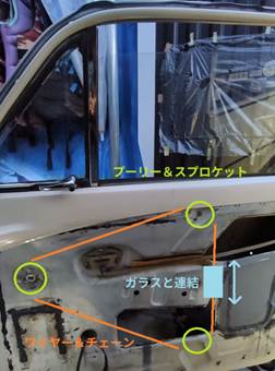 初期状態で、ガラスの上下は下記のような伝達機構で行われていました。
